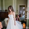 The full skirt is swathed with double silk organza and has a long train (which makes for very dramatic photos). The layering beneath the skirt is extremely soft and drapes in a grecian fashion as opposed to hold its shape like some of the meringue ballgown style wedding dresses I have seen.