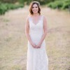 Essense of Australia style D1639. Label size 9. Street size 8. Would fit size 6-8. Pictured bride is a size 8. Modern day vintage form fitting with medium train. Ivory lace over cafe underdress. Without diamante beading. The back zips up under fabric covered buttons. Comes with a detachable 1.5” grosgrain ivory ribbon sash.
