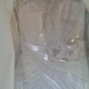 White wedding dress for sale. Dress is in perfect condition. There is an additional accessory attached on the belt. Dress is size: 8 to 10. Height of bride is: 5' 8" and was worn with flat shoes. It is lace and chiffon dress as per picture.