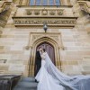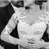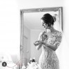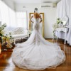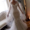 It is a fitted dress with intricate beading throughout the whole dress and then decorated with pearls.