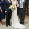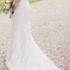 By American designer Anna Maier, this full train dress is constructed with French corded magnolia lace, includes buttons down the back, hidden zipper and and boning for support. The dress cut is classic but the lace style is very unique with a mix between magnolia flowers and intricate cording detail. It adds a touch of playfulness and shows up well in photography.