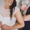 This elegant and feminine Anna Campbell ‘Indianna’ wedding dress will be sure to make your wedding one to remember! The lace neckline is delicate with lace cap sleeves and a silk skirt with silking lining, making this dress heaven to walk in! The wedding dress features a silk dupion belt, which cinches in the waist to show off your silhouette.