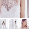Higher illusion neckline for additional coverage, and V-shaped back with lace button closure.