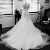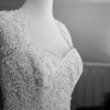 Adjustments & Alterations: 'Anna Campbell' inspired sleeve added in 2016 Material - Hand sewn matching beaded lace style sleeve (not capped look) with 3 rows of Crystal drop beading down biceps. Attached: Sewn into front of dress (inside bodice allowing for easy removal if chosen) with active vintage row of buttons down spine from neck to top of corset and allows for bride to step in. The addition of 2 pop in clips sewn in to the back inside edge of bodice to ensure addition is done up and secured. (this prevents lace edges popping out at the back and also preventing the 'wearing a jacket/bolero' look)