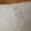 It has been professionally dry cleaned and is in excellent condition (no rips or stains). It has been stored hanging in its cover so it is as crease free as possible, from a pet and smoke free home. Bought new from a bridal shop.