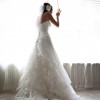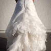 Ethereal, elegant, beautiful, whimsical, all eyes on me, romantic, and comfortable. These were the things I was looking for in my wedding dress and I found it all in this one. I love my wedding dress, I poured my heart into every little detail of this dress. The back is my favorite part, it cascades and flows creating an ethereal grand entrance. It pins up very nicely as well, so I am able to sit, use the restroom, walk around and tear up the dance floor in it. The front has a perfect strapless sweetheart neck with a simple flow.