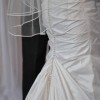 Custom Designed and built Justina McCaffrey- Veronica Dress Built in Bustier with cups and full Corset Raw Silk Buttons all the way down Custom veil can be included: two layers, same material as the dress.