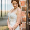 This truly is a beautiful and elegant dress that could be worn for either a day or evening wedding. It is made with ivory lace over a blush satin under skirt. I loved it because of how it made me feel and also because of the lovely colour (I did not want to wear white). The train pins up nicely in the back with barely visible hooks.