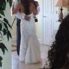 Dress was dry cleaned and properly stored after it was worn one time. Sale INCLUDES VAIL AND RHINESTONE BELT - a $500.00 value Dress was hemmed slightly and bust was take in. To give you an idea I am 5'2" and weigh about 110 pounds. Dress does have a train that is easily pinned up for time during your reception.