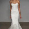 Alberta Strapless French Lace Trumpet Gown. Structured fit-to-flare silhouette, french lace traces soft, textural blooms all over a stunning gown that hugs your curves from the strapless sweetheart neckline to the knees before flaring into a fluted trumpet skirt finished with an elegant train. Hidden back-zip closure and silk lining.