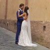 A wedding dress that's absolutely stunning. Very light and easy to dance with. Ivory lace with a nude underlay. Comes with a full length ivory veil as per fourth photo.